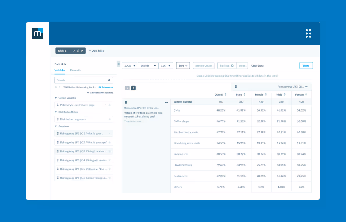 You get access to demographics, media habits, purchase behavior, psychographics, current affairs opinions, and more—across 1,000+ topics.